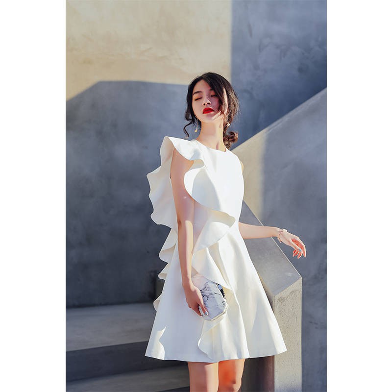 White Evening Dress Short Paragraph 2019 New Ladies Temperament Dress Small Dress Birthday Party Ban Shopee Singapore