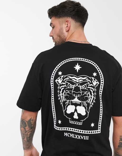 Topman - T-shirt nera con stampa di teschio e tigre sul retro | ASOS
